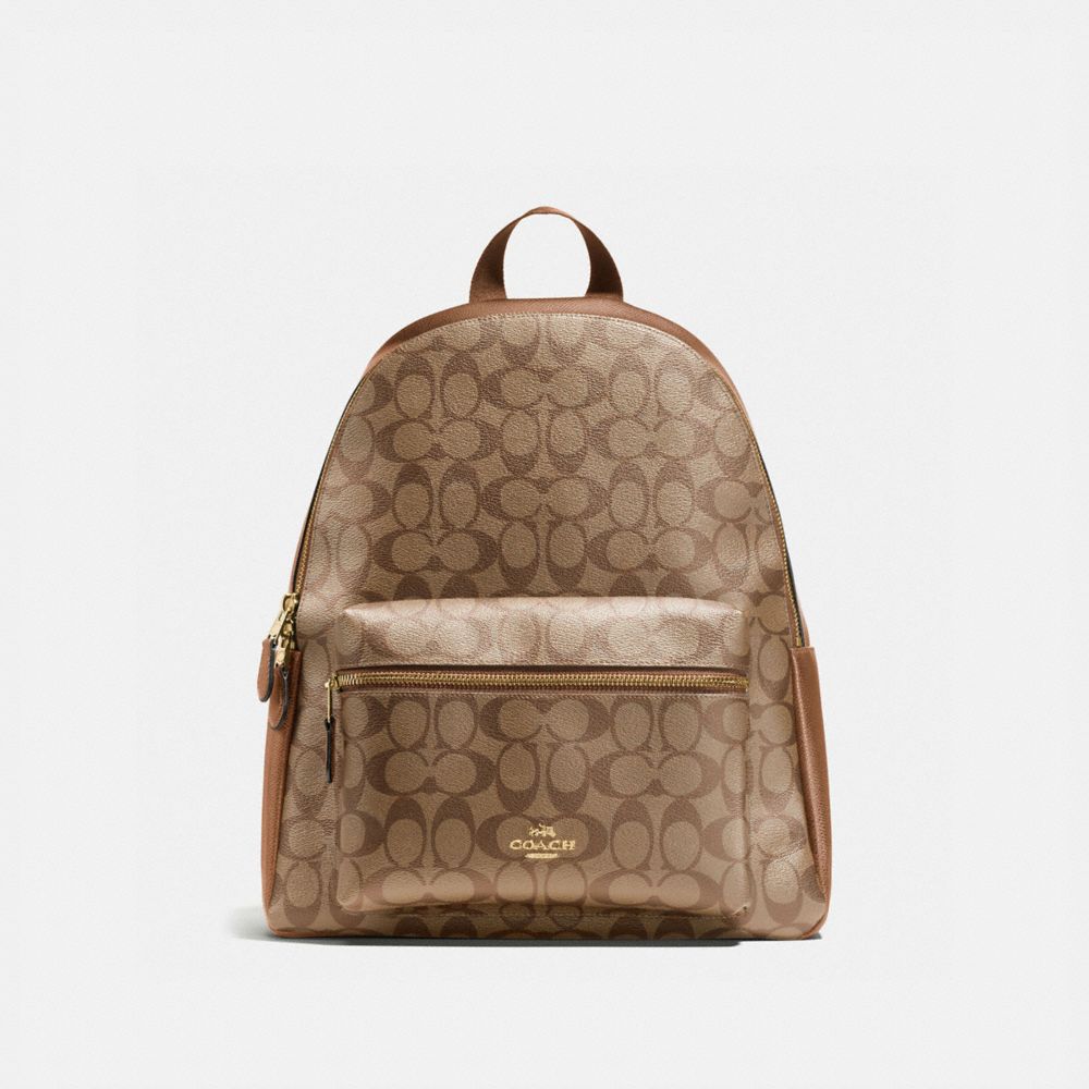 . Coach Nwt Medium Charlie Light Saddle Brown Backpack In Pebble Leather Bag Purse Curtsy Coach Jordyn Backpack In Signature Leather With Rivets F77688 Bva Exclusive Amazon Com Coach Charlie Signature Backpack Shoes